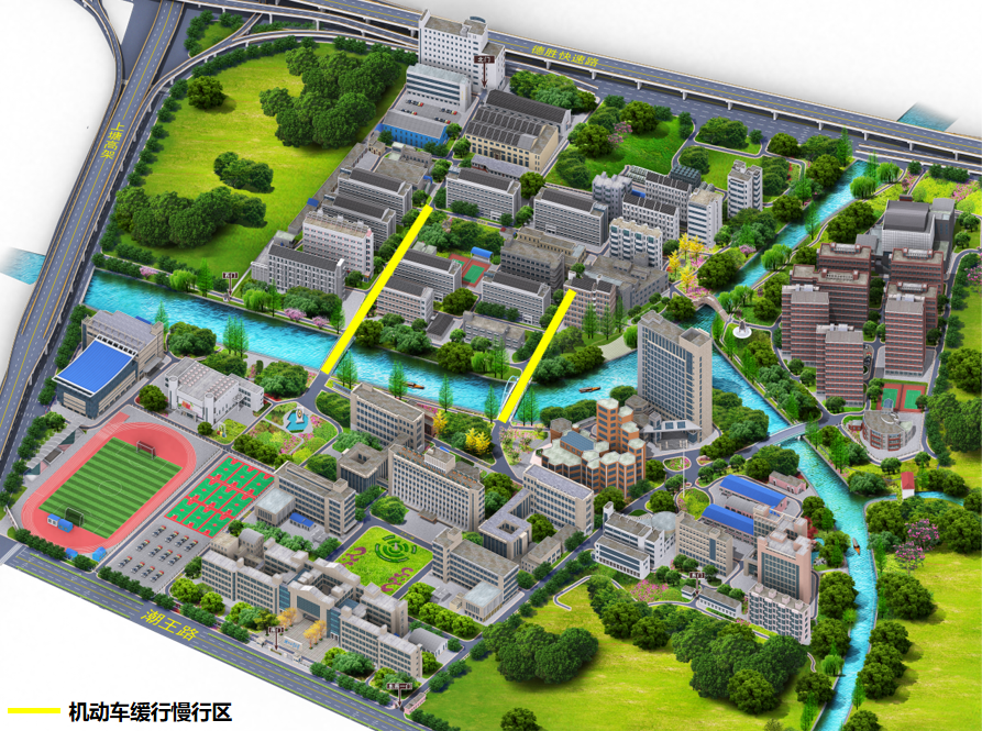 外其,交通道路现实按照各校区,立灵车禁行禁停区正在人员稠密区域设,式”拥堵的连系校园“潮汐,动车限速正在10公里/小时以下)正在部门路段设放缓行慢行区(机。