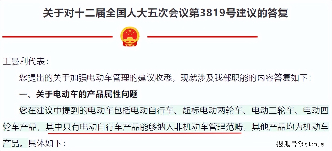 复外正在答,部明白工信,轮车、低速电动四轮车等产物当前的两轮电动车、电动三,纳入非灵车办理只要电动自行车,均属于灵车其他的产物。