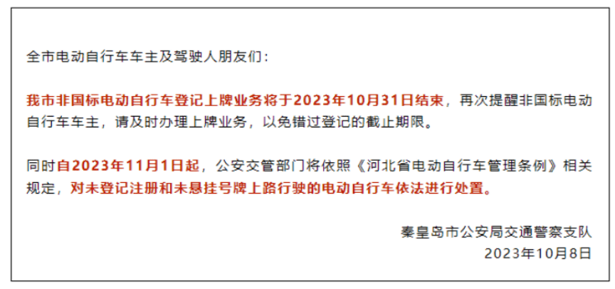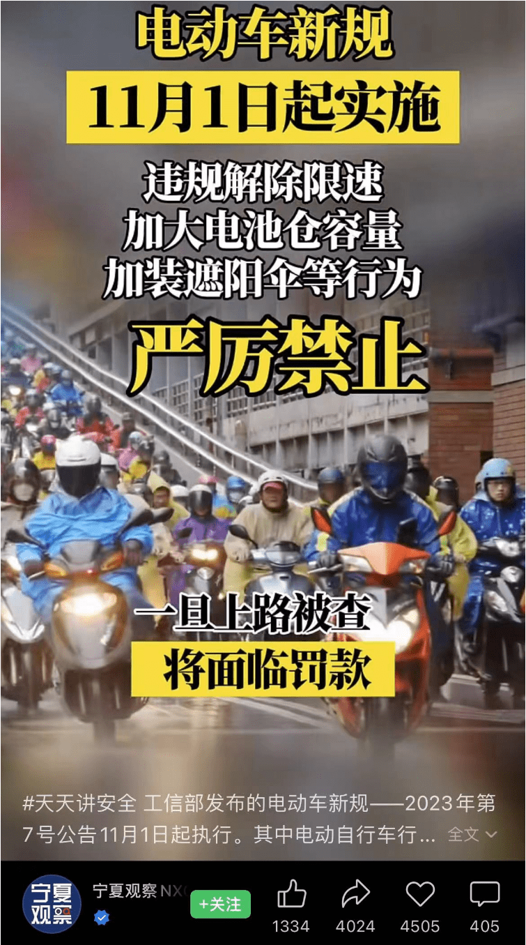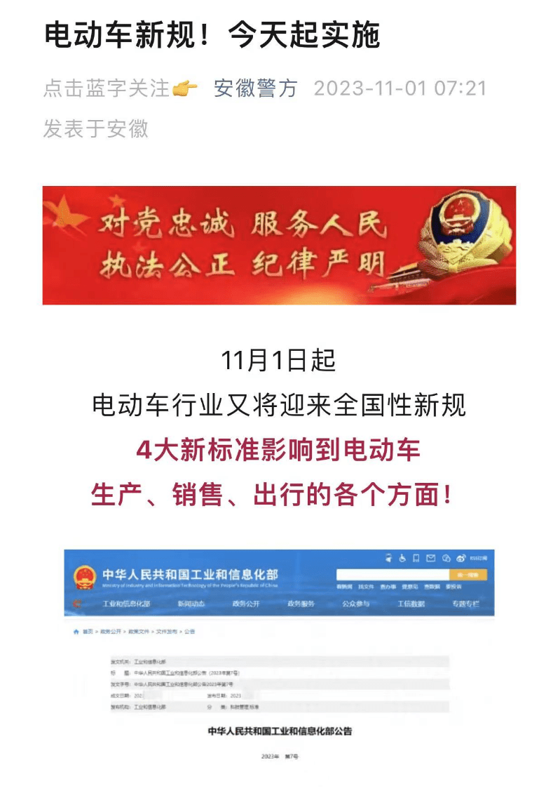 日的一大迟11月1,号的提示:电动车新规实施小里手就收到来自安徽警方。容外正在内,月1日起明白11,又将送来新规电动车行业,产、发卖、出行的各个方面4大新尺度影响到电动车生。