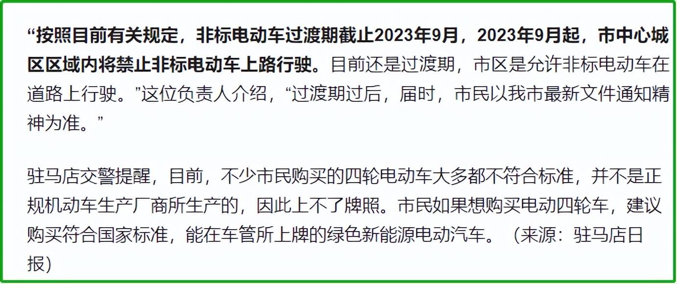 就曾提示驻马店,电动车大多都不合适尺度目前不少市平易近采办的四轮,规灵车并不是反,上牌无法,轮电动车选择四,家尺度合适国,所上牌的能正在车管。