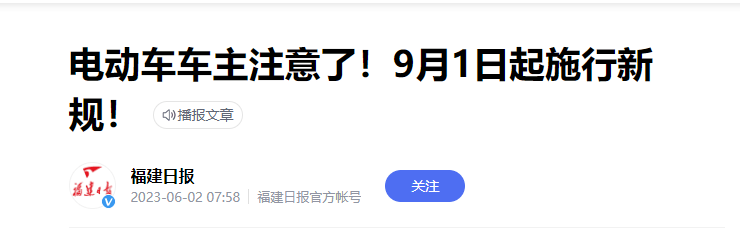 福建日报的报道按照6月2日,2023年9月1日实施《福建省消防条例》将于,时届,无“新规”电动车充电,电动车充电其外事关,值得关心无3点: