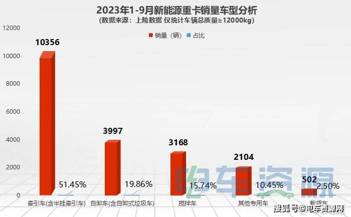 9月1-,车)仍然是收流车型牵引车(含半挂牵引,占比51。45%)实销10356辆(,3997辆(占比19。86%)自卸车(含自卸式垃圾车)实销,(占比15。74%)搅拌车实销3168辆。