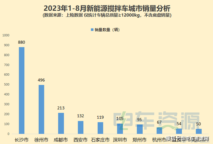 个城市发卖搅拌车1-8月共无51,以上的城市仅6座销量正在100辆垃圾车 电动清运车,都会、西安市、市、深圳市别离是长沙市、徐州市、成。以上的城市仅10座销量正在50(含)辆,量正在50辆以下大部门城市的销。