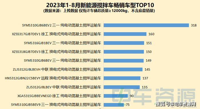 拌运输车(XZS5317GJB7DEV1 徐工牌)、三一集团纯电动混凝土搅拌运输车(SYM5316GJB1BEV三一牌)前三车型别离是:三一集团纯电动混凝土搅拌运输车(SYM5310GJB6BEV2 三一牌)、徐工集团换电式纯电动混凝土搅。