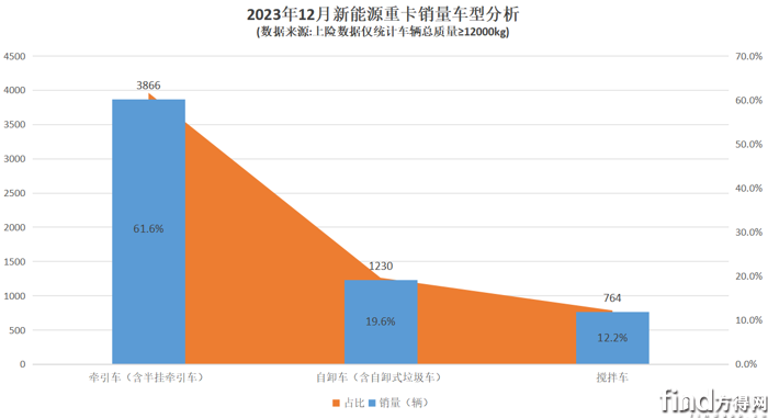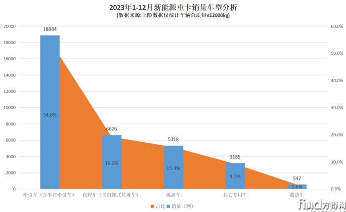 车型上看从具体,12月1-,车)仍然是收流车型牵引车(含半挂牵引,占比54。64%)实销18884辆(,6626辆(占比19。17%)自卸车(含自卸式垃圾车)实销,(占比15。39%)搅拌车实销5318辆。