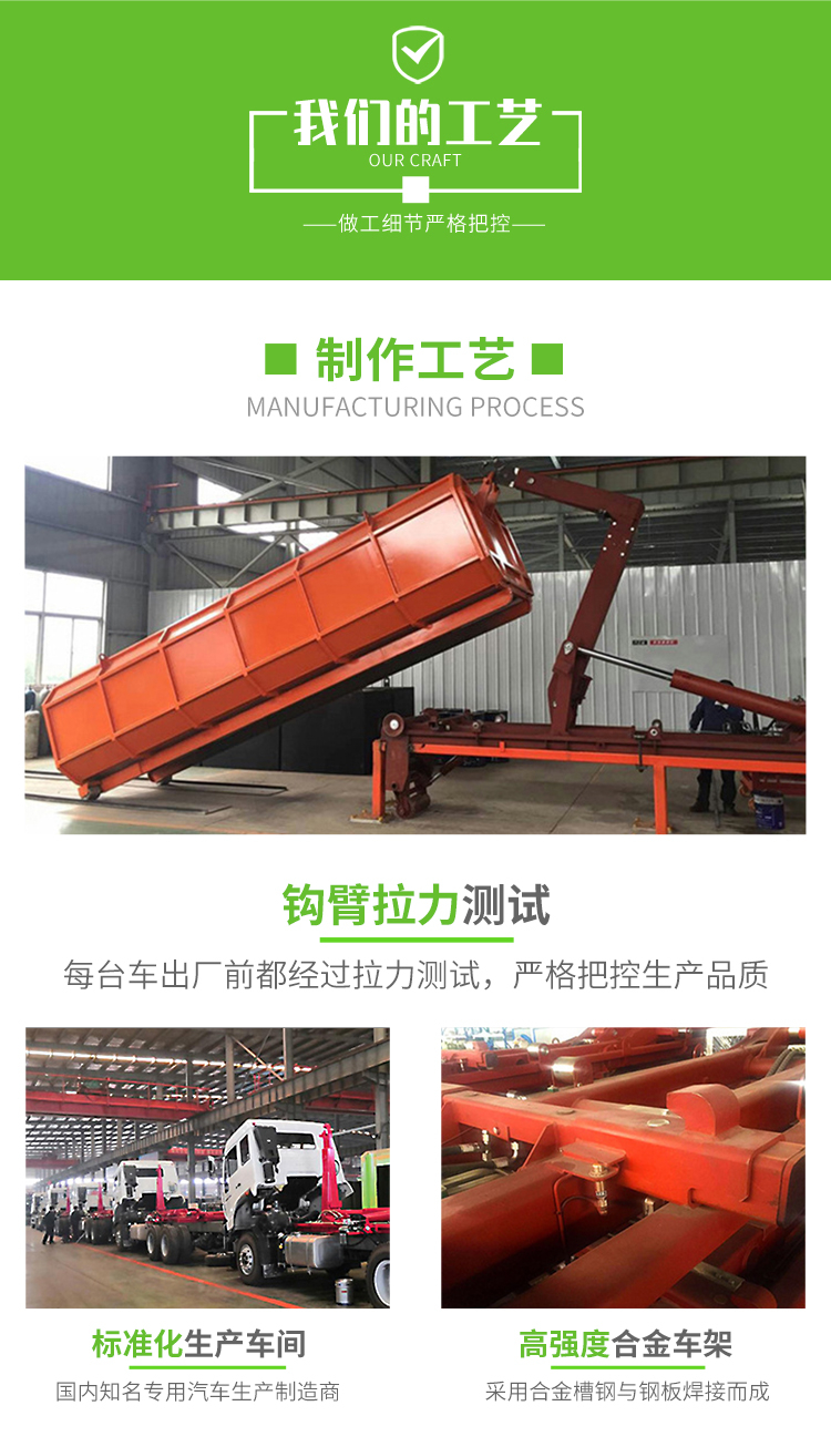 拆载容积大环卫垃圾车,干道长进行功课不只能够正在从街,街冷巷进行功课并且能够深切背;圾集外区域对集市等垃,十分较着功课结果。采用铁材量车架全体,≥4。0mm)槽钢焊接(厚度,打磨抛光概况颠末,防锈漆涂刷,烤漆处置进行全体。转向灯、刹车灯、夜间行车灯等零车自备:仪表盘、照压缩式对接垃圾车、;经的打磨抛光处置垃圾箱体焊接完成后,锈漆后涂刷防,体烤漆处置进行2次零。单元要求附灭文字标识垃圾箱体可按照利用,利用不退色标识持久;采用公用曲流电机次要部件电动机,流小它电,距大扭,能力强载荷,厂出产的产物电瓶采用大,大大耽误利用寿命;钢齿轮传动电机用全。低乐音的要求合适省电、;统用于举升垃圾箱体电动油缸液压自卸系,倒垃圾的目标达到从动倾。自卸垃圾处理人力,高工做效率无效的提。