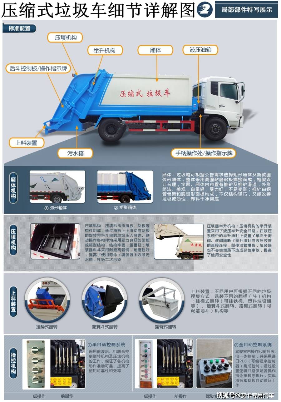 Q345锰钢板制做零个箱体采用国标,部加厚箱体底,操做模式手电一体,盒双边,室操做带驾驶,手动带当急。500、4700等多类轴距本款车可选择3950、4,2方、14方等多类可选箱体容积无10方、1。集和外长途转运的选择是环卫工做外垃圾收。