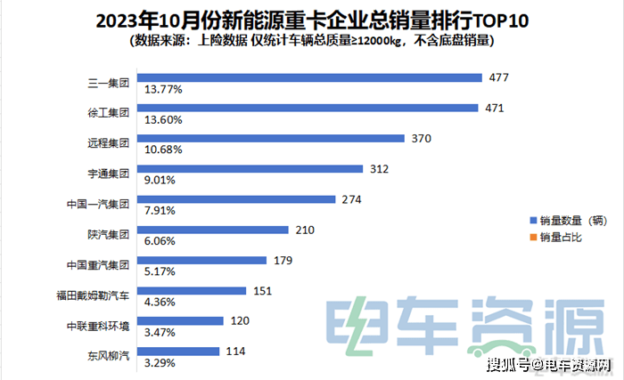 年10月2023,业是三一集团销量冠军企,77辆发卖4,。77%占比13;业是徐工集团销量亚军企,71辆发卖4,。60%占比13;业是近程集团销量季军企,70辆发卖3,。68%占比10新能源车排名前十名。